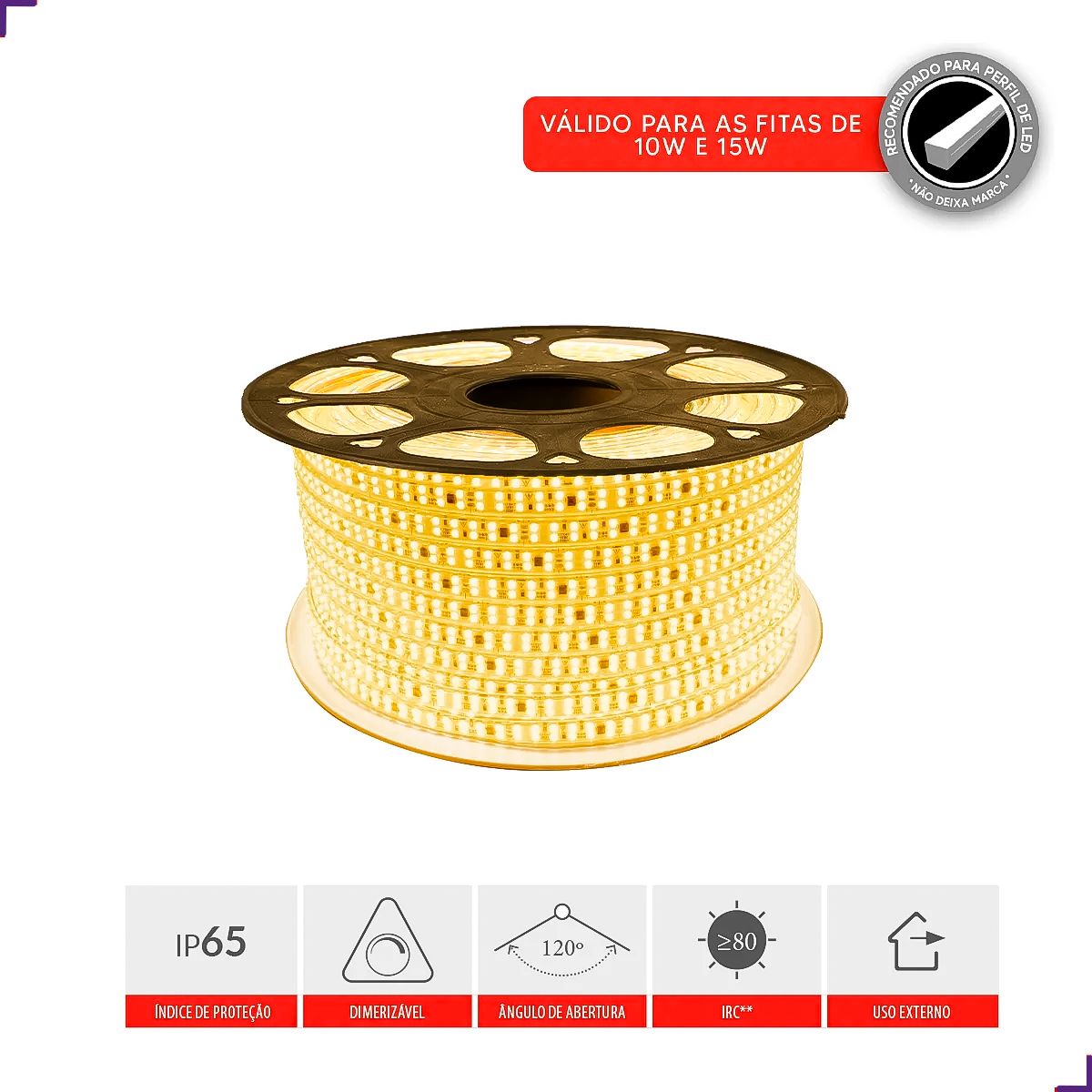 Código do modelo: LED-FITA-EXT-CONNECT-IP65-10WM-50M-AM2700K-127VCA